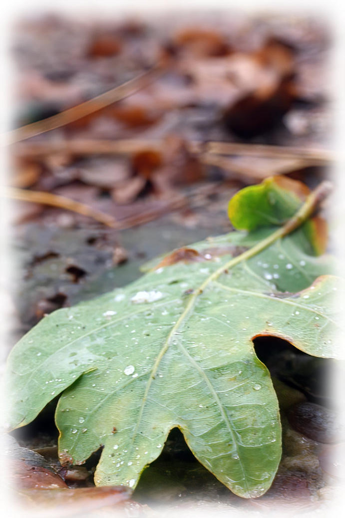 A close up of leaf on the track up to greenkeeping department on Morecambe Golf Course.