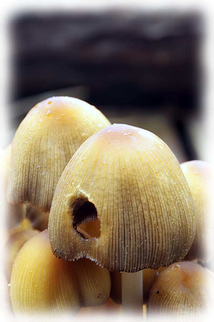 A close up of fungi growing on log in the yard of Greenkeeping Department.