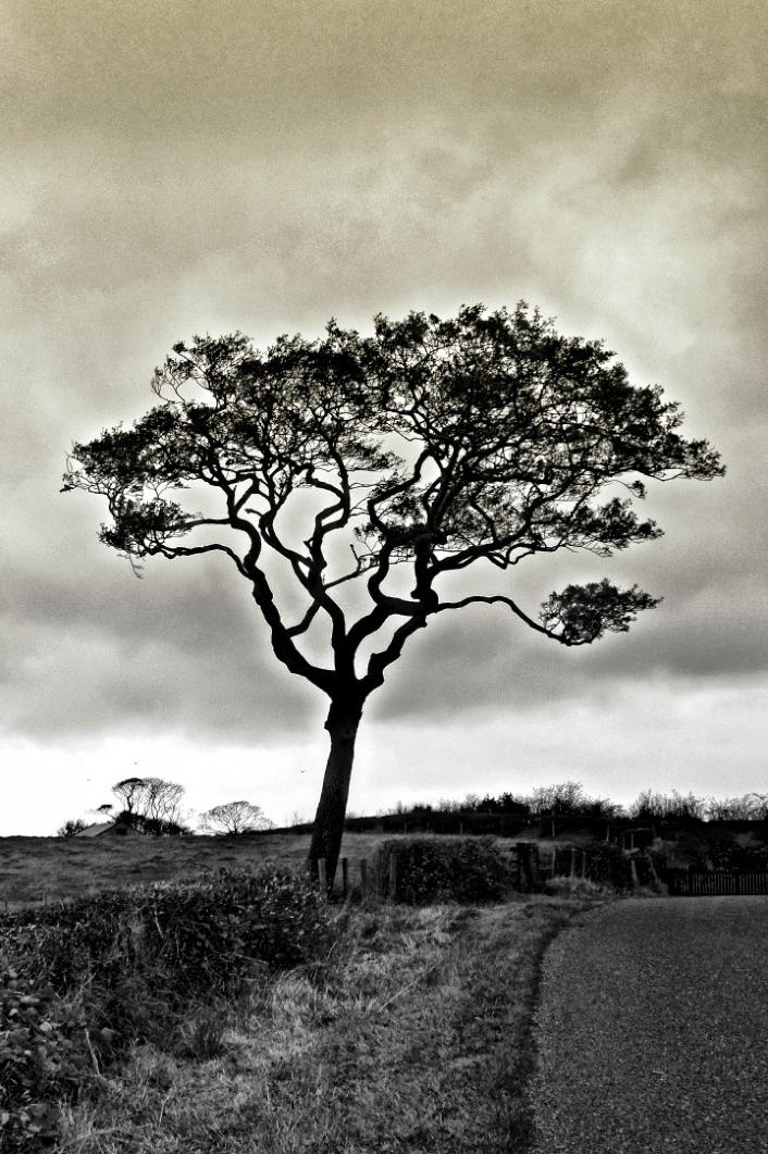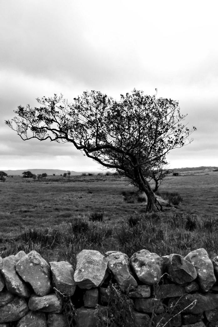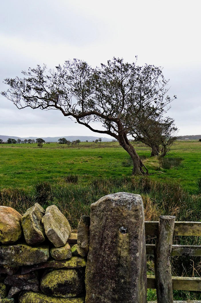 A view of old hawthorn hedge on the road from Lower Green Bank over to Condor Valley.