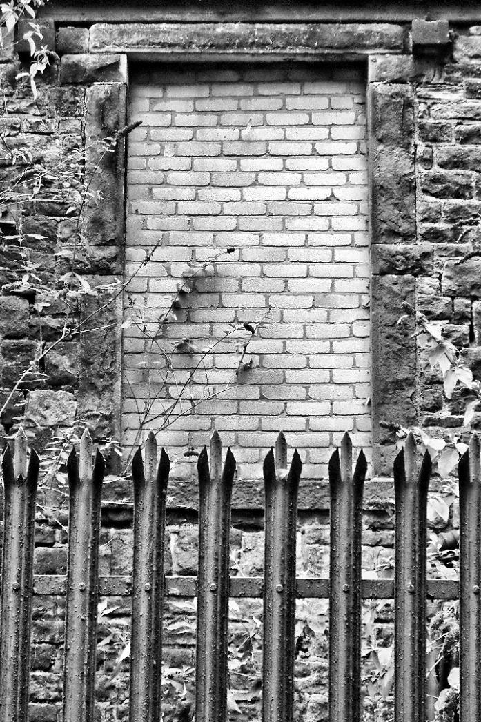 Brick up window by side cycle path.