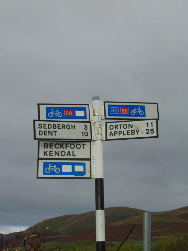 The signposts at top of climb from the Crook of Lune Bridge on Howgill Lane.