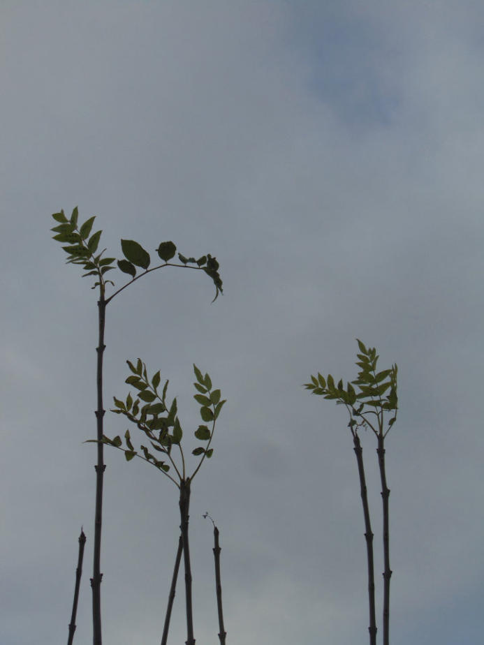 Ash leaves at top of hedge at side of the lane.