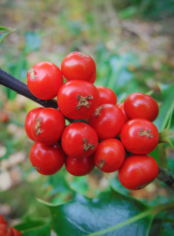 Holly berries in the hedge at side of the lane.
