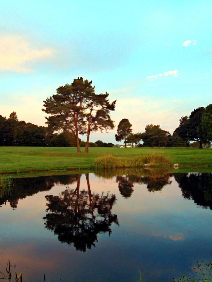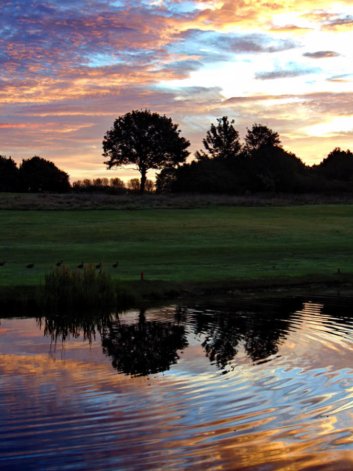 Reflections on the pond by 8th fairway on Morecambe Golf Couse, the view looking towards the 7th tee.
