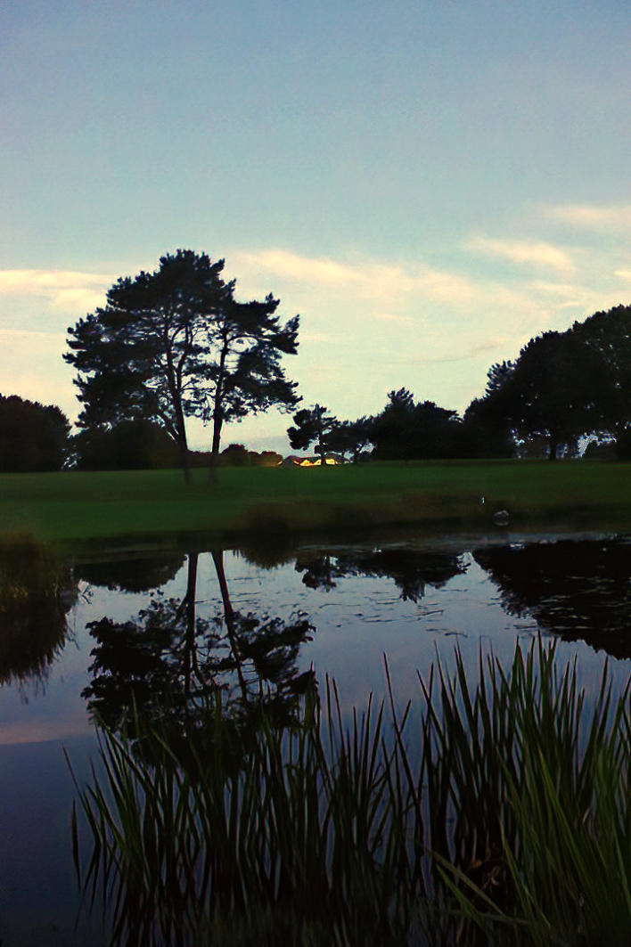 The view looking across the pond towards 9th fairway and the Clubhouse on Moreambe Golf Course.