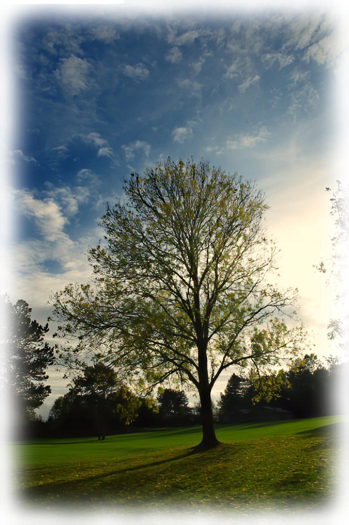 A view of the Ash tree in the rough between 8th and 9th fairways on Morecambe Golf Course.