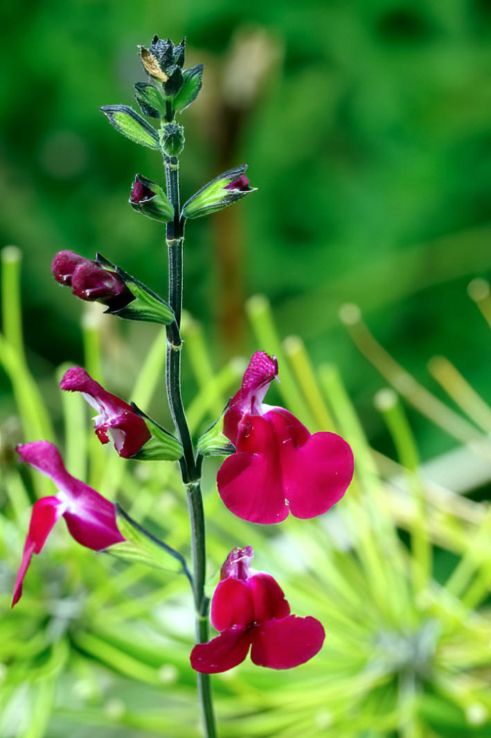 Salvia greggii ‘Cherry Lips’ flowering in the back garden.