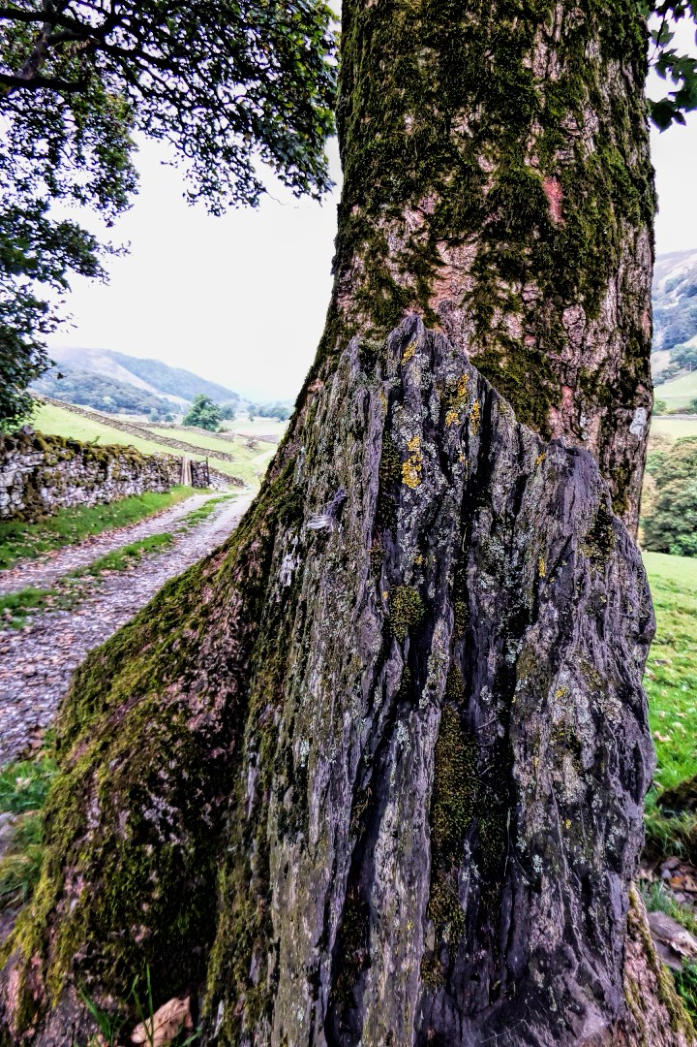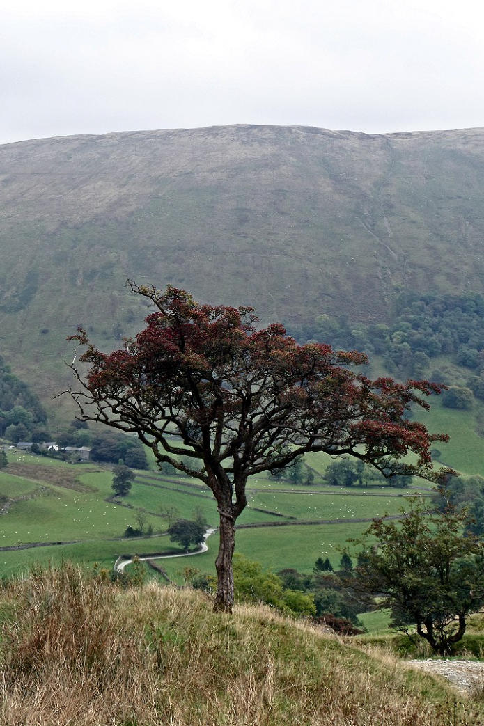 The Hawthorn tree at side of public way with view looking back down into Longsleddale.