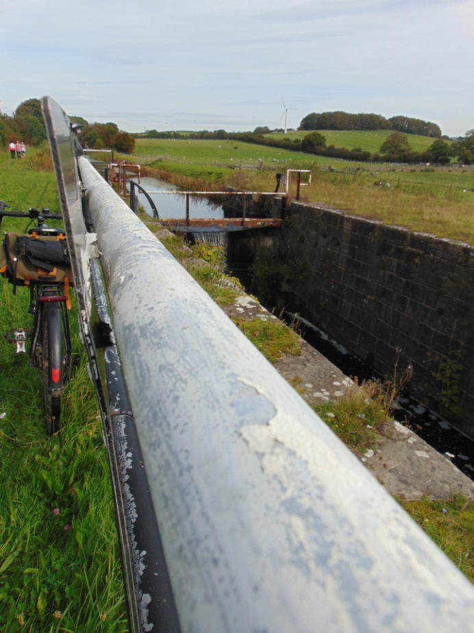 The view looking up the towpath of Lancaster Canal at the locks at Tewitfield.
