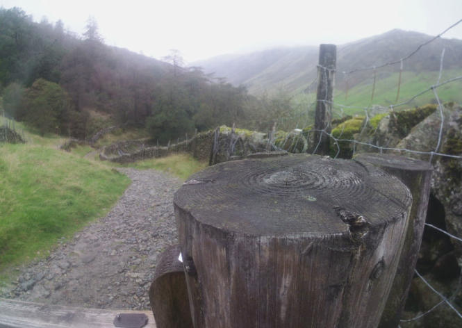 The view a bit further up the track looking back toward Sadgill and please note this gate can tricky to