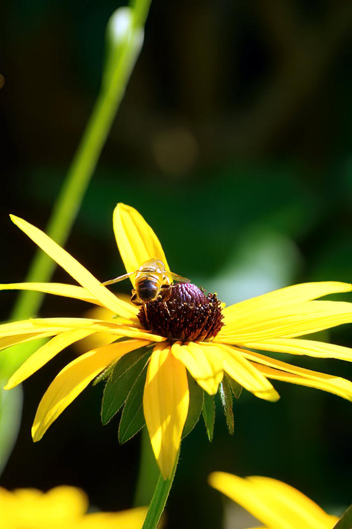 A bee feeding on Rudbeckia fulgida ‘ deamii’ in the back garden.