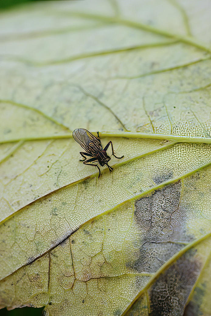 A fly on a leaf.
