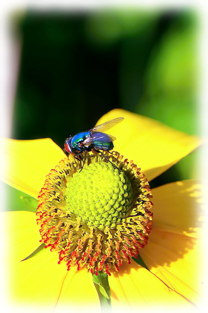 A insect on Rudbeckia laciniata ‘Luligold’ in the back garden.