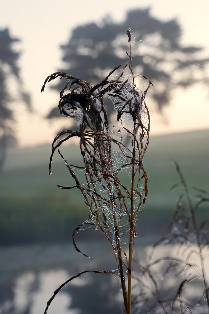 Spider’s web on a Reed at side of 8th pond on Morecambe Golf Course.