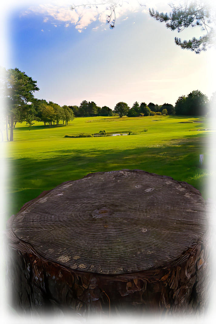 A view from the tree stump at side yard of the greenkeeping department looking across the 9th fairway towards