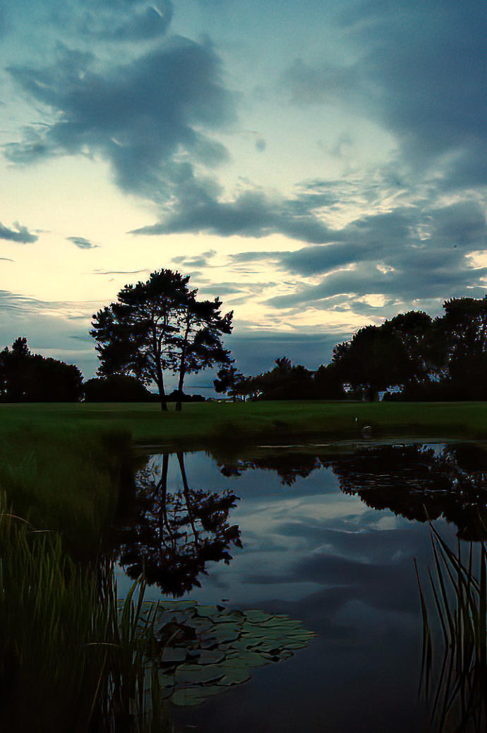 A early morning view looking across pond by the 8th fairway towards the 9th Fairway on Morecambe Golf