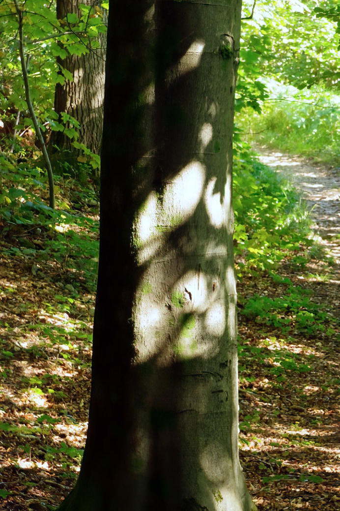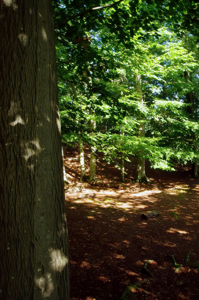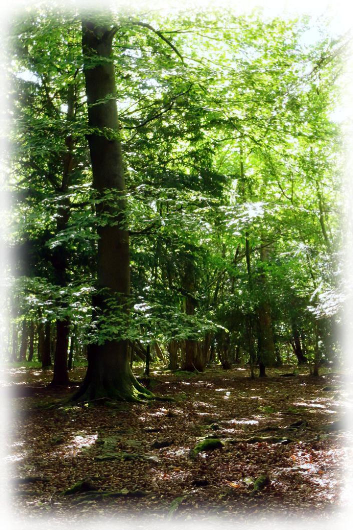 bright sunny morning when you get sun shining through the leaves of Middlebarrow Wood.