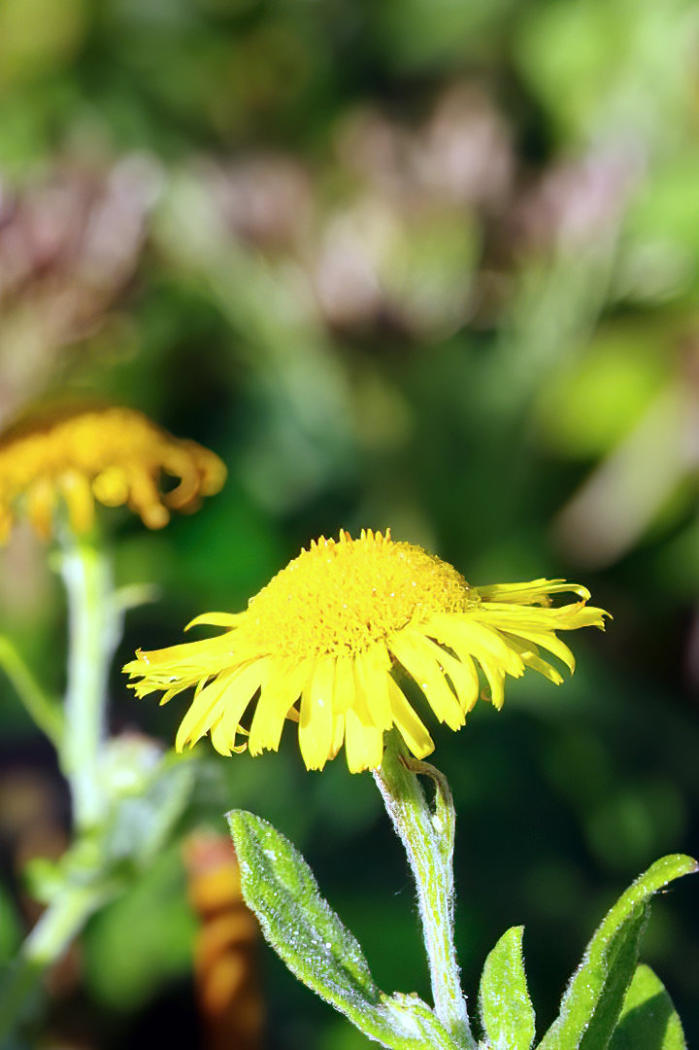 Common Fleabane flowering at side of footpath around Hawes Water.