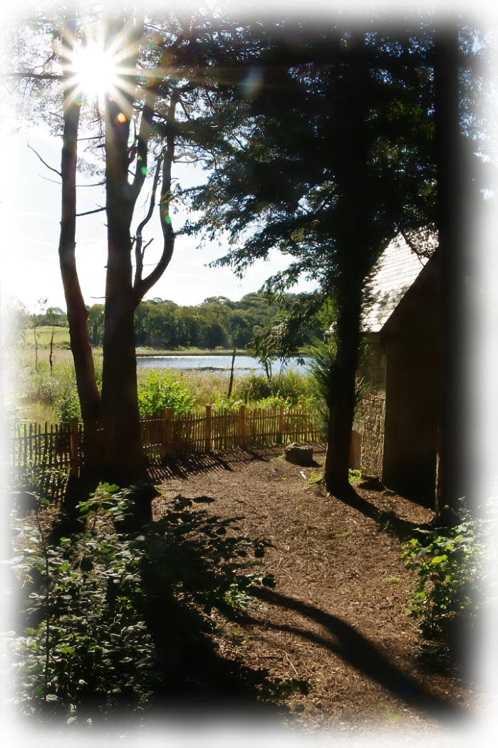 Morning sunlight shining on the Summer House.
