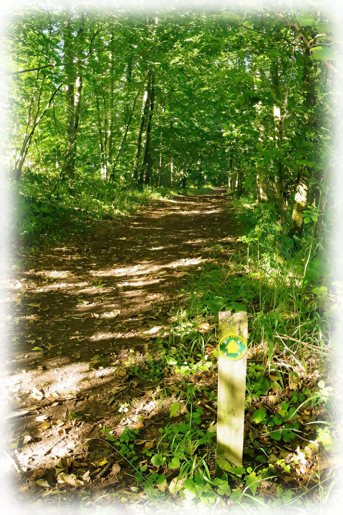 Sunlight shining on the footpath to Arnside Tower.